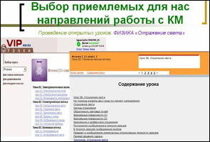 - Подготовка к ЕГЭ через программы-репетиторы. На всех ПК медиацентра установлены программы-репетиторы с банком тестовых заданий и контрольных упражнений за несколько лет; - Использование ресурсов сервера vip.km.ru для организации внеклассной работы: проведение обучающих и развивающих игр с младшими школьниками, поиск информации на определенную тему с конкретной целью. Например, поиск видеофрагментов по физике, демонстрирующие ядерную реакцию, иллюстрации к теме по биологии «Условные и безусловные рефлексы» и т.д.; - Организация проектной деятельности учащихся и учителей: использование информационных объектов «КМ-Школы…»