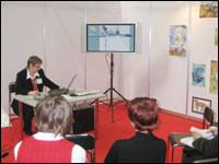 На выставке присутствовало около 200 экспонентов, представляющих высшую школу и систему начального и среднего профессионального образования, ведущие предприятия российской экономики и военное образование. Свое видение успешной и эффективной интеграции информационных технологий в образовательную среду представила компания «Кирилл и Мефодий» посредством продукта «КМ-Школа». В рамках выставки специалисты компании провели презентационный семинар-викторину, на котором участникам, помимо необходимой информации о продукте, была предложена увлекательная и познавательная игра в виде викторины. Несмотря на скромную сдержанность, присущую, как и подобает, взрослому человеку, к концу семинара-викторины директора и учителя с огромным удовольствием отвечали на несложные вопросы Веры Николаевны Антюшиной.