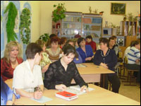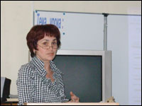 | Директор школы №289 г. Заозерска | На семинаре выступила директор школы Кондратенко Ирина Владимировна. В своем докладе она подчеркнула, что в школе созданы все условия для успешной работы учителей и учащихся по освоению и использованию компьютерных технологий и проектной методики. Здесь есть хороший парк компьютерной и проекционной техники, выход в Интернет (теперь высокоскоростной) с каждого компьютера в кабинетах информатики, а также — в кабинете директора. Имеется мощный цветной лазерный принтер, веб-камера, графические планшеты. Учащиеся и учителя, не имеющие компьютер дома, могут поработать после уроков в кабинете информатики школы.