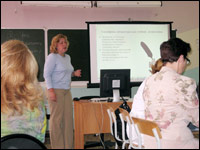 27 июня, во второй день обучения, педагоги уже умели создавать виртуальные экскурсии в электронной среде «КМ-Школа», викторины, контрольные работы, уроки, а также проводить их в сетевом режиме, используя автоматизированное рабочее место учащегося «КМ-Школы».В процессе обучения учителям удалось потренироваться в создании своих собственных учебных проектов, работая в среде «КМ-Школа», что вызвало большой интерес и удовольствие! «Еще бы пощелкать! Такие уроки получаются!» — Вера Павловна не хотела завершать свою работу…