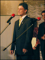 | Стас Пьеха с удовольствием поздравил конкурсантов и высказал особые слова благодарности директору своей гимназии |