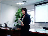 | Методист Н.К. Жесткова не только рассказала собравшимся о возможностях, которые предоставляет ученикам АРМ «Учащийся», но и наглядно продемонстрировала их |