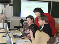 Несмотря на то, что время на групповую работу было ограничено, участникам удалось разработать и провести фрагменты уроков. Особенно хочется отметить модельный урок с использованием мультимедиалекций «КМ-Школы», который разработали О.О. Данилевская (ГОУ СОШ №1198), А.Л. Фетисов (НОУ «Алеф»), И.К. Кабоскина (ГОУ СОШ №1936). Педагоги творчески использовали педагогические приемы, которые обсуждались на семинаре, и дополнили урок новыми идеями.