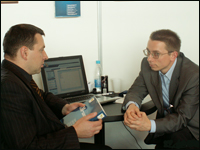 | Коммерческий директор ООО «Кирилл и Мефодий» Садомовский А.А. и ведущий специалист информационно-аналитического центра Департамента образования г. Москвы Гольцов К.В. |
