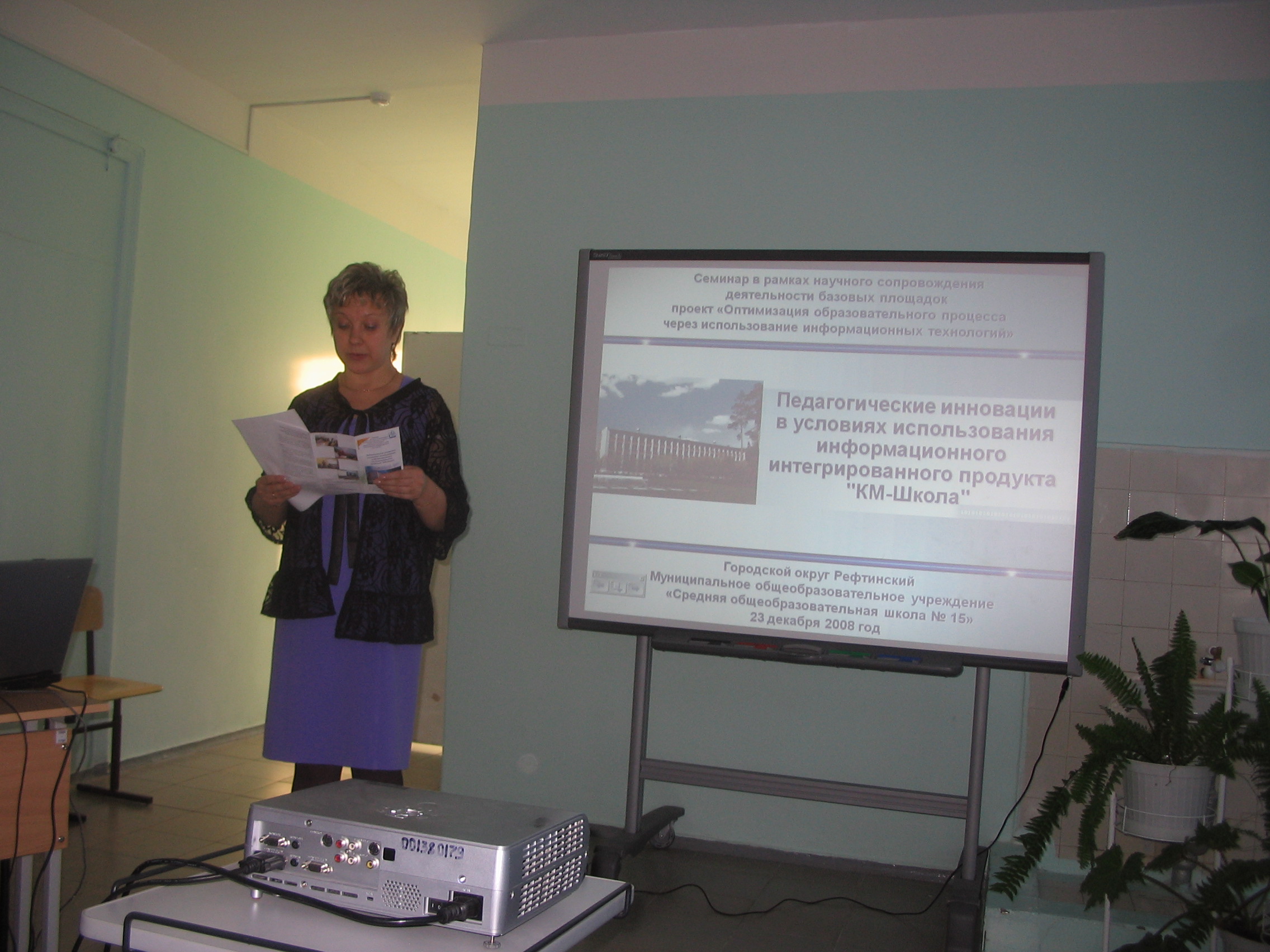 Заместитель директора Швецова Светлана Анатольевна – руководитель первой секции семинара, которая называлась «Возможности ИИП «КМ-школа» для субъектов образовательного процесса», отмечает: «Наша школа, являясь базовой площадкой ИРРО Свердловской области, приступила к завершающему этапу внедрения ИИП «КМ-Школа». Сегодня, имея опыт работы с данным продуктом, логично обобщить работу педколлектива и наметить новые ориентиры».