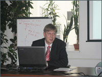 | Специалист службы технической поддержки А. Сорокин отвечает на вопросы участников семинара |