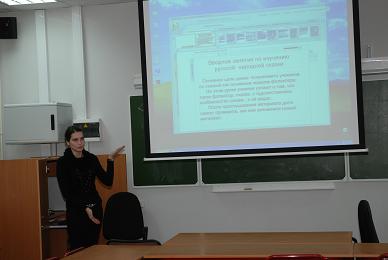 В течение нескольких занятий будущие педагоги – филологи (многие из которых уже имеют опыт работы в школе!) осваивали инструментальный комплекс автоматизированного рабочего места учителя и анализировали контентное содержание Базы знаний. Результатом творческой работы стали самостоятельно разработанные уроки русского языка и литературы по выбранным темам. На итоговом занятии присутствовали декан филологического факультета Коханова В.А., заместитель декана Звонкова Н.А., начальник Управления информационных систем и технологий Новикова З.Н., а также специально приглашенные гости- методисты Учебного Центра ООО «КМ Образование» Антюшина В.Н. и Малафеева О.Н. Студенты – филологи показали хорошее знание методики преподавания русского языка и литературы , уверенное владение компьютерной техникой и умелое сочетание инновационных и классических форм и методов преподавания предмета. Морфология имен существительных, русские народные сказки, сказки А.С. Пушкина, мифы Древней Греции, поэзия Есенина, Анненского, Лермонтова, Тютчева, проза Тургенева - вот лишь некоторые темы итоговых студенческих работ-уроков, созданных с использованием контента «КМ-Школы». Авторы лучших уроков получили подарки от компании «КМ Образование» и Информационно – развивающего портала «Школьный клуб» - детские энциклопедии и карточки бесплатного доступа к контенту «Школьного клуба».