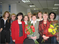 | Победители конкурса: II место - Кудрявцева Т.Ю. (вторая справа) и III место - Русанова О.Б. (четвертая справа) и сотрудники Отдела внедрения и Методического отдела компании «КМ» |
