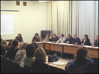 Вечером в УМЦ «Голицыно» собрались все участники программы Intel «Обучение для будущего». Сотрудники компании «Кирилл и Мефодий» подготовили и провели презентацию информационной интегрированной среды «КМ-Школа», после которой состоялся круглый стол на тему: «Создание и развитие современной информационной среды в образовательных учреждениях и роль „КМ-Школы“ в этом процессе». Специалисты рассказали участникам о концепции информатизации, заложенной в продукте, вместе обсудили проблемы и перспективы создания региональных ресурсных центров для продвижения продукта в регионы. Мэтры отечественного образования - ректоры ИПКРО, зав.кафедрами педагогических вузов, руководители управлений образования, федеральные эксперты - задали много интересных и, в том числе, довольно непростых вопросов для молодых специалистов в области мультимедиа.