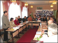 Марина Владимировна представила коллегам свой опыт использования информационного интегрированного продукта (ИИП) «КМ-Школа». Продемонстрированный ей урок был посвящен блоку тем «Серебряный век русской культуры». Интересен подход педагога к организации и проведению урока: в процессе разработки урока Марина Владимировна подготовила учащимся богатый и информативный аудио- и видео-материал, который распределила по пяти тематическим разделам. А уже на уроке, в процессе самостоятельной работы, учащиеся из предложенного учителем материала самостоятельно «смоделировали» групповые проекты по одному из направлений изучаемой темы.