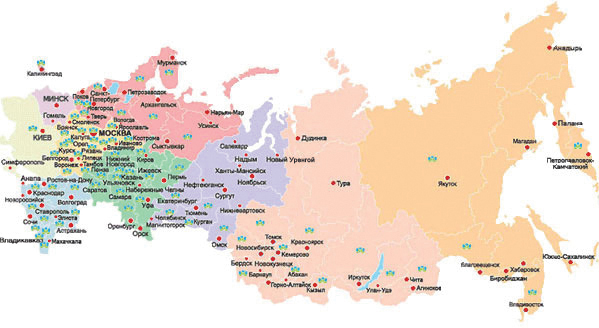 Примечание: При наведении курсора мыши на субъект РФ показывается его наименование и число подписчиков в данном субъекте. Кликните на территории субъекта для перехода к списку УО.