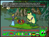 После того, как вступление закончится, появится первый кадр сказки, в левом нижнем углу которого видна голова «гусенички» (Рис. 1).