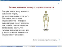 Создавая свой урок в «КМ-Школе», мы использовали трехмерное изображение скелета человека, интерактивную иллюстрацию мышечной системы человека, анимированную иллюстрацию, демонстрирующую сокращение мышц руки. Полностью урок вы найдете на нашем сайте в разделе «Уроки», подразделе «Начальная школа — Окружающий мир».