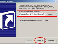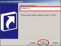 Шаг 3. Присвоим имя созданному ярлыку: Windows XP, введя его в соответствующую строку, и нажмем кнопку «Готово». На рабочем столе появится ярлык с указанным именем.