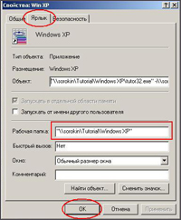 Шаг 5. В строке «Рабочая папка» запишем путь к папке данного тренинга на компьютере - СЕРВЕРЕ и нажмем кнопку «ОК».