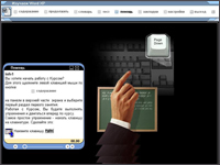 По ходу работы с курсом «галочкой»> в содержании автоматически отмечаются те темы и разделы, которые хотя бы один раз были открыты учащимся, а «галочкой в круге» - разделы, пройденные им полностью. Текст каждого практического задания отображается на экране и дублируется голосом диктора за кадром.