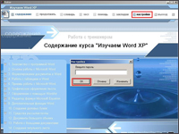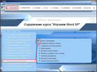 Программная среда представленных компьютерных тренингов имеет одинаковую структуру, поэтому рассмотрим ее функциональные возможности на примере практического курса «Изучаем Word XP».