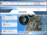 Пункт МЕНЮ «Настройки» предназначен для учителя. При первом входе в этот раздел достаточно нажать «ОК», т. к. по умолчанию пароль отсутствует. В дальнейшем рекомендуется пароль установить. Здесь можно настроить режимы работы тренинга: условия тестирования, музыкальное и звуковое сопровождение содержания учебного материала.