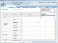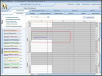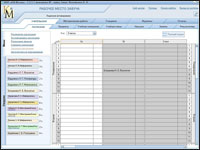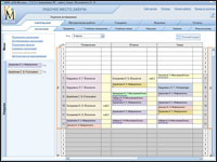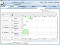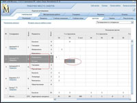 Таблица расписания уроков заполняется перетаскиванием мышью именованных ярлыков с левой части рабочего стола в нужную ячейку расписания. При этом среда автоматически следит за выполнением установленных ранее условий учебного процесса (количество групп в классе, учебные помещения, нагрузка). Перетаскиваемый именованный ярлык может фиксироваться только в ячейке белого цвета. Серый цвет ячейки говорит о том, что для фиксации данного ярлыка эта ячейка заблокирована, т.е. данный учитель / предмет не предусмотрен нагрузкой в данном классе, на данном уроке. Или для него уже установлены учебные часы на данном уроке, но в другом классе. Например, среда не позволяет установить ярлык «Журавлева Л.С./Информатика» в 1 «А» классе.